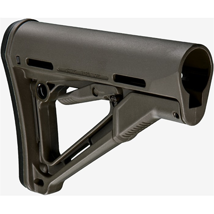SPECS: Impact-resistant nylon polymer, Black, Dark Earth or O.D. Green.. LOP adjustment range, 3½" (8.9cm). Mil-Spec - 67⁄8" (17.5cm) OAL, 5¼" (13.34cm) high. Fits fits mil-spec 1.14" O.D. carbine buffer tubes.