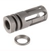 Die VG6 Precision Delta 556 Mündungsbremse ist ein optimiertes Design, das durch den Einsatz von Computational Fluid Dynamics und computergestützter Technik entwickelt wurde. Es handelt sich um einen hybriden Kompensator und eine Mündungsbremse, die den Rückstoßimpuls glättet UND den Mündungsaufstieg reduziert. Das Ergebnis ist ein komfortableres Schießerlebnis, während du die Sicht auf das Ziel für schnellere und genauere Nachschüsse als mit dem Standard A2 Flash Hider behältst.