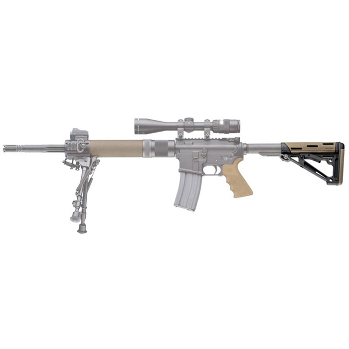 - Schiebe den Hogue OverMolded Buttstock auf das BufferRohr.