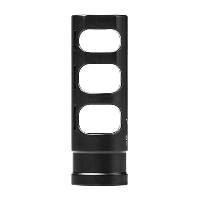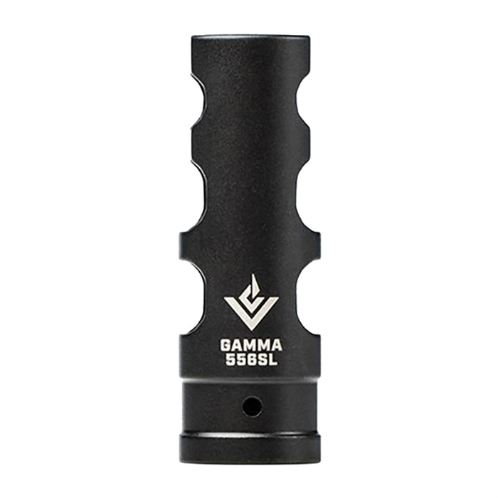 The GAMMA 556SL is the ideal muzzle brake for 14.5" rifle builds. Featuring an outside diameter of .745", the GAMMA 556SL can be pinned and welded to your barrel while still allowing full maintenance and removal of your gas block without having to remove the muzzle device. The GAMMA 556SL utilizes a new aggressive chamber design that improves gas flow and reduces felt recoil significantly. It also features deep channel cuts that greatly reduce the overall weight toward the front end of your build. Slim in design does not mean slim in performance. Users can still expect the same great performance they have grown to trust from VG6 Precision muzzle brakes. With the GAMMA 556SL, you have the optimal solution for a lightweight, legal (when pinned and welded) and flat shooting 14.5" Rifle Build. Includes pre-drilled hole for pinning to a 14.5” barrel for an overall length of 16.1”. The CAGE Device is NOT compatible with the GAMMA 556SL