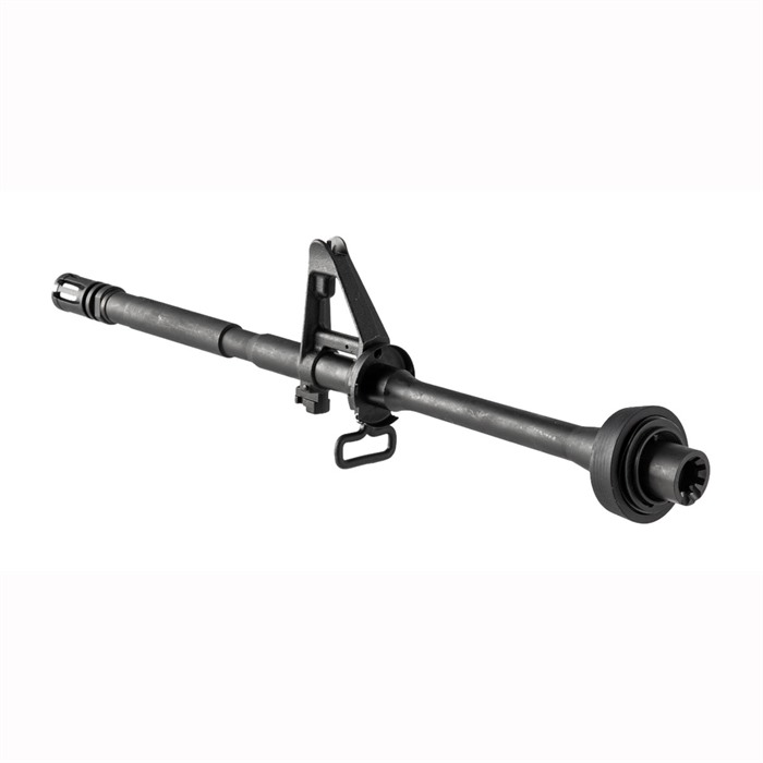 Die Colt LE6920 Ersatzläufe sind in Längen von 16 Zoll erhältlich und können entweder als abgezogener Lauf, komplett mit Laufverlängerung, oder als Montage geliefert werden, die eine Laufmutter, einen Frontvisierturm, einen Posten und einen Riemenverschluss umfasst.