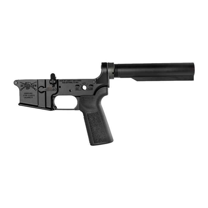 Brownells has worked with Sons of Liberty Gun Works to offer these AR-15 ‘Semi-Complete’ Lower Receivers. What do we mean by ‘Semi-Complete’? Well we know that our customers want a rugged, dependable lower receiver for their build and with this lower receiver being built in house by the SOLGW gunsmiths you get just that. But we also know that there are two items more likely to be swapped out from personal preference on a lower receiver than any other, and those are the stock and trigger. With the SOLGW Semi-Complete Lower Receiver we’ve left those two items out of the build, meaning you’re not paying for the stock and trigger you don’t want and can get exactly the stock and trigger you do. The Sons of Liberty Gun Works AR-15 lower receivers are built from mil-spec 7075-T6 forgings from the lead forge in the U.S. The contour is fully machined leaving no flash marks from the forging. SOLGW takes extra care when machining our lower receivers resulting in tolerances that are tighter and fits that are better than other lower receivers. They use mil-spec Matte black hard-coat anodized Mil 8625 Type 3 Class 2 finish. Complete with Carbine Buffer Tuber Assembly, Take Down Pins, B5 P23 Grip, Bolt and Magazine Releases Installed. Lower receivers are available with either the Rebellious Stripes or Angry Patriot roll marks.