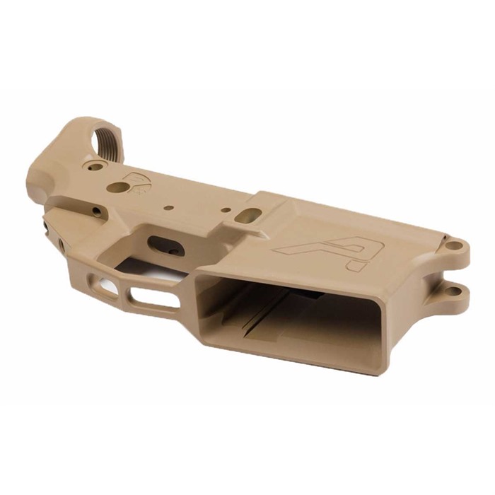 Aero Precision’s M4E1 Stripped Lower Receiver delivers the strength and unique looks of a billet machined lower, with the lower cost, lighter weight, and easy parts compatibility of a forged lower. The M4E1 starts as an "enhanced" forging from extra-strong 7075 T6 aluminum that is precision machined to final dimensions for compatibility with all standard "mil-spec" AR-15 parts. As a bonus, the good-looking M4E1 has a streamlined profile, without the chunky appearance of many milled lowers. Actually, the Aero Precision M4E1 Stripped Lower Receiver is not quite "stripped." Extra benefits include an integral triggerguard, which creates a more rigid, structurally sound receiver than a standard AR-15 lower, and also eliminates the risk of accidentally breaking off a triggerguard tab when working on the rifle. The enlarged triggerguard opening gives extra clearance so you can easily operate the trigger when wearing gloves. The M4E1 comes with an easy-to-install threaded bolt catch roll pin that eliminates the risk of damaging the lower’s finish during installation (OK, you may be able to still do damage, but you’ll have to work hard at it!). Other features of the Aero Precision M4E1 stripped lower include: Flared magwell opening facilitates fast, one-shot mag changes Threaded takedown pin detent recess for easy buffer removal without chasing down a flyaway detent! Accepts standard mil-spec AR-15 fire control components, pistol grip, buffer tubes & stocks Hardcoat anodized to resist surface wear, in Matte Black or Cerakote™ Flat Dark Earth The Aero Precision M4E1 Stripped Lower Receiver even has a polymer-tipped tensioning screw nestled in the grip tang that you can adjust for a tight, rattle-free fit with the upper receiver. All the benefits of a custom machined lower without the downside!