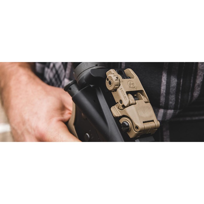 Diese flach montierten Polymer-Visiere sind sofort einsatzbereit und lassen sich mit nur einem Finger ausklappen. Die stromlinienförmigen Konturen verhindern, dass sich etwas im Gestrüpp, am Tragegurt oder an anderer Ausrüstung verfängt, wenn sie zusammengeklappt sind.