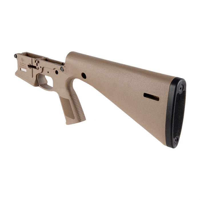 Was macht diesen Stripped Lower so besonders? Die Antwort ist einfach… der KE Arms KP-15 Stripped Lower Receiver ist ein monolithischer Polymer-AR-15-Stil Lower Receiver, der aus spritzgegossenem, 30% glasgefülltem Nylon hergestellt wird. Sein einzigartiges Design integriert den Buffer Tube, den Pistolengriff, den Abzug und einen 13-Zoll (LOP) Schaft als integrale Komponenten in den Receiver.