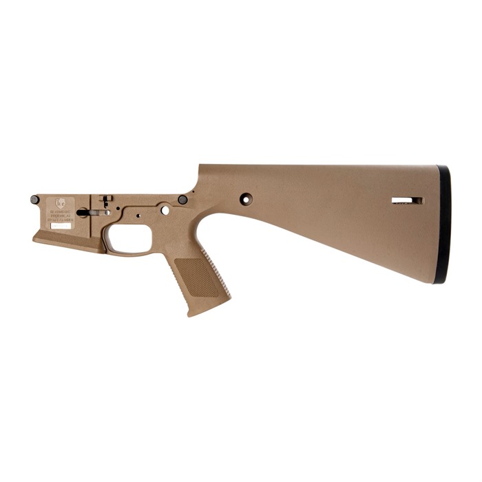 What makes this stripped lower different? The answer is simple… the KE Arms KP-15 stripped lower receiver is a monolithic polymer AR-15 style lower receiver made from injection molded, 30% glass-filled nylon. Its unique design incorporates the buffer tube, pistol grip, trigger and a 13-inch (LOP) buttstock into the receiver as integral components. The result is an affordably priced, lightweight lower receiver. The KE Arms KP-15 stripped lower receiver uses a carbine buffer and spring. The take down and pivot pins have built-in detents, which increases durability by eliminating the spring and detent holes. The buffer detent (should you choose to use it) is held in place with a 5/64” roll pin. The hammer pin area is wider for durability; standard AR-15 hammer pins can still be used, though the KE Arms longer hammer pin is recommended for customers preferring a flush pin for aesthetic reasons. The safety selector spring and detent have been designed to load from the top, then the selector is slid over them. (Standard selectors can work but removing them can be particularly difficult. KE Arms recommends the use of their designated mil-spec selector or ambi selector to make removal easier. Follow the manufacturer’s assembly guide for further instructions.) Compatible with all Mil-Spec fire control groups Compatible with cassette style match triggers Flared magwell Available in black and flat dark earth MLOK Slots at rear of stock for sling attachment Pre-drilled in front for QD socket inserts Uses a standard bolt catch. Cannot accept the PDQ lever. The PDQ lever is exclusive to the WWSD complete rifle. Do NOT use anything other than standard carbine buffers and round springs or the JP SCSS in the KP-15. WARNING!: This item is legally classified as a receiver. You Must be 21 years old to purchase this item and a resident of the same state your transferring dealer is licensed in. Stripped Lowers Include Pivot and Take Down Pins KP-15 Selector Detent Buttplate 5/64" Roll Pin to Retain Buffer Detent The KE Arms KP-15 is compatible with standard AR-15 uppers in calibers including .223/5.56mm NATO, .300 Blackout, 6.5mm Grendel and 6.8mm SPC. The lower receiver is also compatible with 9mm blowback systems, when used with a minimum buffer weight of 5.4oz (carbine). Failure to use a minimum buffer weight of 5.4oz can damage the lower. CERAKOTE: If you intend to Cerakote your KP-15 the manufacturer recommends the bake should be done at low temperatures (<190 Degrees F) and with an upper in place to prevent warping. WARRANTY: The KE Arms KP-15 has a lifetime warranty for normal use. If the receiver breaks through misuse or neglect, KE Arms will replace it ONCE for $65.00. NOTE: Not recommended for .458 SOCOM, .50 Beowulf or .50 BMG. Please contact KE Arms if you intend to register your KP-15 lower receiver as an NFA weapon.