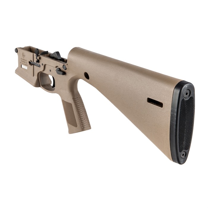 What makes this lower different than its counterparts? The answer is simple… the KE Arms KP-15 is a monolithic polymer AR-15 style lower receiver made from injection molded, 30% glass-filled nylon. Its unique design incorporates the buffer tube, pistol grip, trigger and a 13-inch (LOP) buttstock into the receiver as integral components. The result is an affordably priced, lightweight lower receiver. The KE Arms KP-15 lower receiver uses a carbine buffer and spring. The take down and pivot pins have built-in detents, which increases durability by eliminating the spring and detent holes. The buffer detent (should you choose to use it) is held in place with a 5/64” roll pin. The hammer pin area is wider for durability; standard AR-15 hammer pins can still be used, though the KE Arms longer hammer pin is recommended for customers preferring a flush pin for aesthetic reasons. The safety selector spring and detent have been designed to load from the top, then the selector is slid over them. (Standard selectors can work but removing them can be particularly difficult. KE Arms recommends the use of their designated mil-spec selector or ambi selector to make removal easier. Follow the manufacturer’s assembly guide for further instructions.) Weight: 1.704 lbs. Compatible with all Mil-Spec fire control groups Compatible with cassette style match triggers Flared magwell Available in black and flat dark earth MLOK Slots at rear of stock for sling attachment Pre-drilled in front for QD socket inserts Uses a standard bolt catch. Cannot accept the PDQ lever. The PDQ lever is exclusive to the WWSD complete rifle. Do NOT use anything other than standard carbine buffers and round springs or the JP SCSS in the KP-15. WARNING!: This item is legally classified as a receiver. You Must be 21 years old to purchase this item and a resident of the same state your transferring dealer is licensed in. The KE Arms KP-15 is compatible with standard AR-15 uppers in calibers including .223/5.56mm NATO, .300 Blackout, 6.5mm Grendel and 6.8mm SPC. The lower receiver is also compatible with 9mm blowback systems, when used with a minimum buffer weight of 5.4oz (carbine). Failure to use a minimum buffer weight of 5.4oz can damage the lower. CERAKOTE: If you intend to Cerakote your KP-15 the manufacturer recommends the bake should be done at low temperatures (<190 Degrees F) and with an upper in place to prevent warping. WARRANTY: The KE Arms KP-15 has a lifetime warranty for normal use. If the receiver breaks through misuse or neglect, KE Arms will replace it ONCE for $65.00. NOTE: Not recommended for .458 SOCOM, .50 Beowulf or .50 BMG. Please contact KE Arms if you intend to register your KP-15 lower receiver as an NFA weapon.