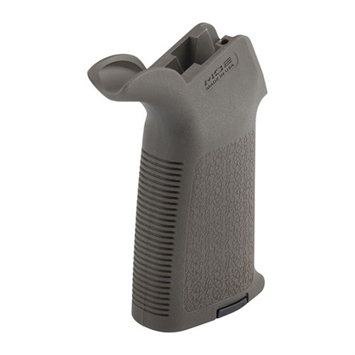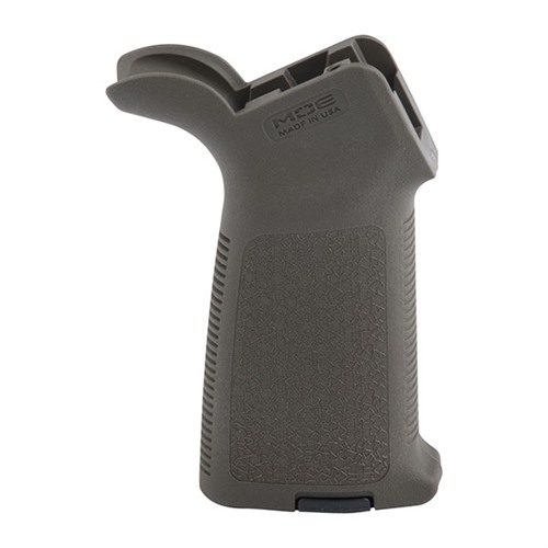 Der MOE Griff zeichnet sich durch eine starre, voll unterstützte Einteiler-Konstruktion aus, die aus dem gleichen verstärkten, schlagfesten Polymer besteht wie der MIAD Griff. Er hat eine strukturierte Oberfläche mit einem Crackle-Design an den Seiten und tiefen horizontalen Rillen am Vorder- und Hintergriff.