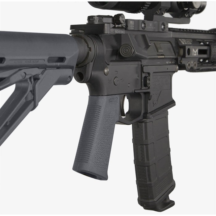 Erhältlich in verstärktem, geformtem Polymer, in den Farben Schwarz, Flat Dark Earth, O.D. Green, Dark Earth oder Grau. Passt auf den standardmäßigen mil-spec AR-15/M16 unteren Empfänger. Auch kompatibel mit den meisten AR-Stil .308 Gewehren, die einen AR-15/M16 Griff akzeptieren.