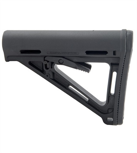 Magpul Original Equipment (MOE) carbine buttstock provides the quality, durability, and ergonomic benefits of Magpul’s CTR stock in a rugged, economical, drop-in package. Strong, A-frame design is lightweight and comfortable, yet provides operator with plenty of support. Comb contour is wider than standard issue M4 stock to help shooter maintain a solid, consistent cheekweld. Streamlined exterior and protected release lever won’t snag on clothing, gear, vehicle interior, or vegetation. Heavy duty, spring-loaded release lever allows fast length-of-pull adjustments and won’t dig into your hand. Impact- and heat-resistant, polymer construction includes molded-in reinforcements at stress points, plus two slots for web slings and a hole for a toe-mounted sling swivel or clip-on sling. Soft, synthetic rubber buttpad increases comfort and helps prevent slippage.Commercial fits larger, 1.17" O.D. commercial carbine buffer tubes. Buffer tube, carbine buffer, receiver extension nut, and carbine-length action spring not included. Available in Black.