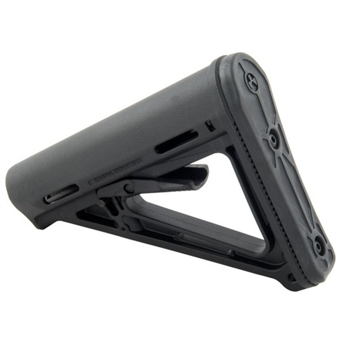 Magpul Original Equipment (MOE) carbine buttstock provides the quality, durability, and ergonomic benefits of Magpul’s CTR stock in a rugged, economical, drop-in package. Strong, A-frame design is lightweight and comfortable, yet provides operator with plenty of support. Comb contour is wider than standard issue M4 stock to help shooter maintain a solid, consistent cheekweld. Streamlined exterior and protected release lever won’t snag on clothing, gear, vehicle interior, or vegetation. Heavy duty, spring-loaded release lever allows fast length-of-pull adjustments and won’t dig into your hand. Impact- and heat-resistant, polymer construction includes molded-in reinforcements at stress points, plus two slots for web slings and a hole for a toe-mounted sling swivel or clip-on sling. Soft, synthetic rubber buttpad increases comfort and helps prevent slippage. Mil-Spec fits 1.14" O.D. buffer tubes on Colt-manufactured M4 and similar mil-spec tubes that accept both four- and six-position collapsible stocks.