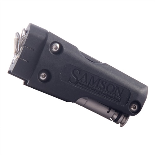 Ein nachfüllbares Edelstahlrohr enthält genau genug Öl für eine Feldschmierung. Verwende die Drahtbürste zum Reinigen des Bolzens und des Trägers, oder entferne die Bürste und befestige sie am Zugkabel für die Laufreinigung, wobei du den Hülsenabzieher als T-Griff nutzt.