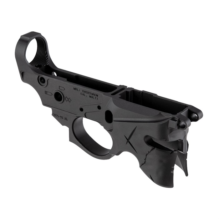 Looking to put together a custom AR-15, tailored to your specific needs? The Sharps Bros. Overthrow AR-15 Lower Receiver is a great starting point for your next build. With an open mag well helmet design, battle worn dents, sword gashes and crack lines, the Sharps Bros. Overthrow AR-15 Lower Receiver is constructed entirely from 7075-T6 aluminum. Features black hard-coat anodized finish Multi-cal marked Weight: 11.5 ounces The Sharps Bros. Overthrow AR-15 Lower Receiver can be used with any mil-spec internal components, ensuring that you can build your rifle to fit your wants and needs.