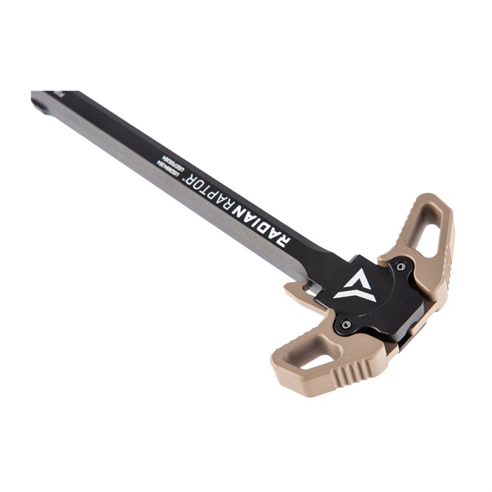 The Radian Weapons AR-15 Ambidextrous Raptor Charging Handle with Talon Safety is a product pairing you'll only see from Brownells, and the setup ensures that AR owners have two enhanced elements that are vital parts of any improved AR-15 rifle. Black finish Made from 7075 aluminum Safety selector provides 90-degree or 45-degree throw Selector can be used in most AR-15 and AR-10 rifles The Radian Weapons AR-15 Ambidextrous Raptor Charging Handle with Talon Safety is completely made in the USA to ensure high-quality design and construction.