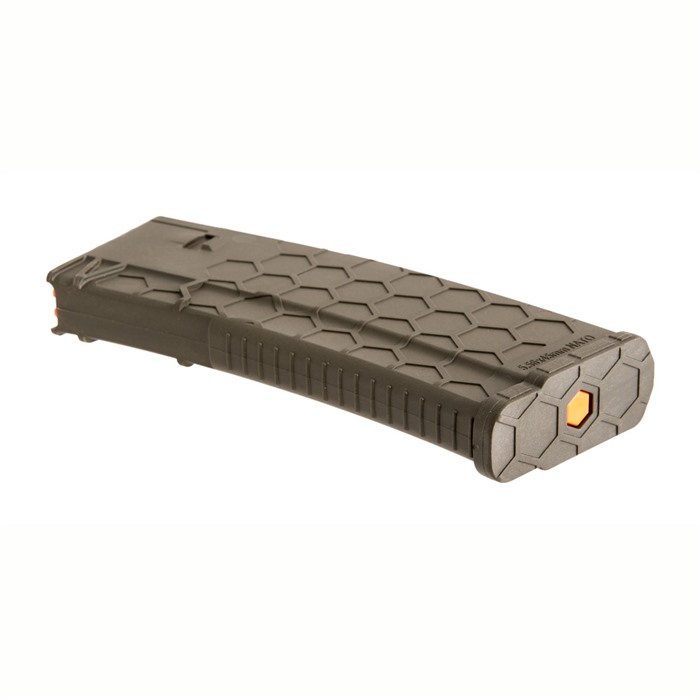 Die Hexmag Magazine verfügen über einen überlegenen Griff mit einem patentierten, erhöhten hexagonalen Muster und einem schlagfesten Polymergehäuse. Außerdem bieten sie eines der einzigen echten werkzeuglosen Designs der Branche, um das Magazin zur Reinigung oder zum Einbau des HexID zu zerlegen.