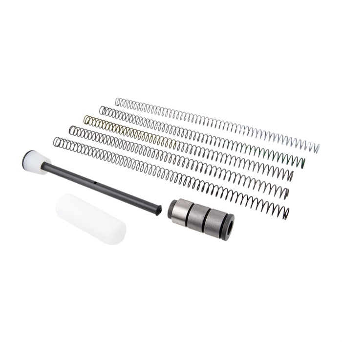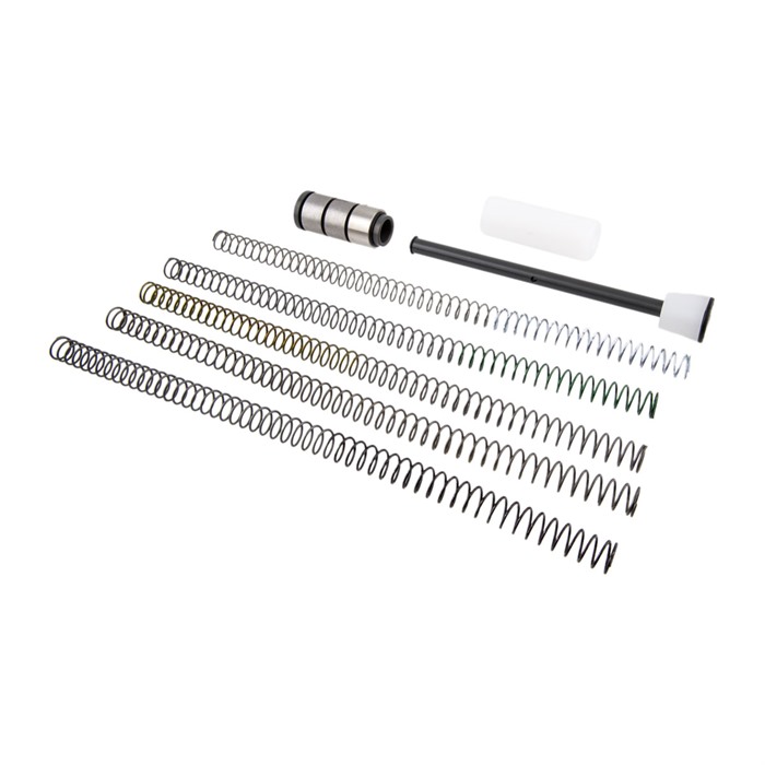Die Auxiliary Spring Rate Kits für die JP Silent Captured Spring ermöglichen eine individuelle Abstimmung des Geräts auf ein bestimmtes Gewehr. Während die Standardfeder die beste Leistung für die breiteste Palette von Konfigurationen bietet, kann eine einfache Demontage und Wiederzusammenbau der JPSCS mit einer leicht unterschiedlichen Federrate tatsächlich optimierte Leistung liefern, insbesondere für Gewehre ohne einstellbaren Gasblock.