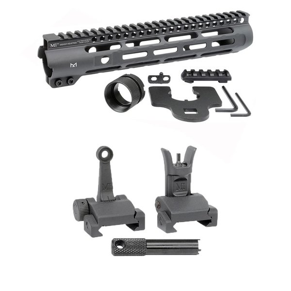 Kombiniert mit diesen Handguards sind die Midwest Industries AR-15 Flip-Up Combat Sights. Diese Visiere sind entweder mit 1.5-MOA oder 2-MOA Anpassungen am vorderen Posten erhältlich, während die hintere Apertur 0.5-MOA Anpassungen bietet. Wenn sie nicht in Gebrauch sind, klappen die Visiere flach auf die Schiene und bieten beim Hochklappen den Schützen ein bekanntes, erkennbares und einfach zu verwendendes A2-Visierbild.