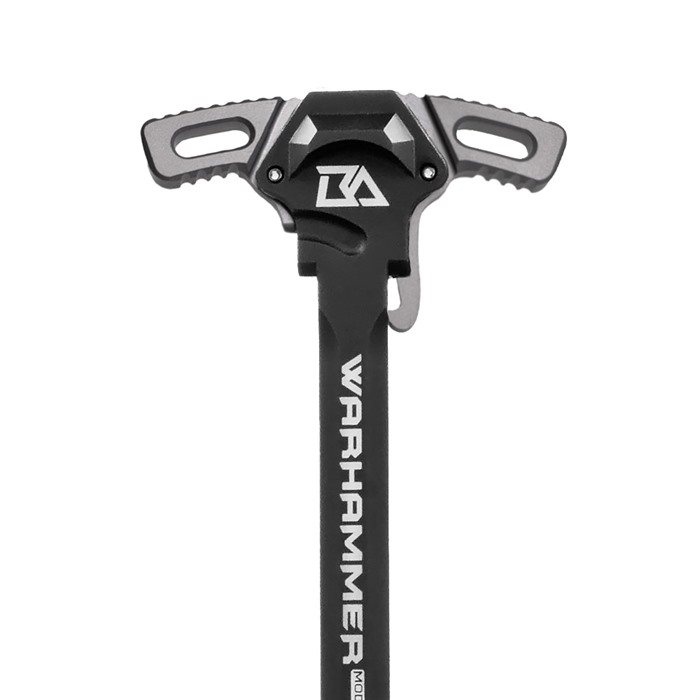 The Breek Arms WARHAMMER MICRO MOD2 ambi charging handle is a simple and affordable upgrade that will substantially increase the use of your AR-15. Easily grab on either side of the handle and you can quickly charge your rifle even with large gloves with the textured grooves that are cut into the latch handles. The smaller latches on the MICRO are for use when shooting with gear, slings, or barriers to avoid snagging. The total width of the latches measures 2.40", slightly wider than a standard charging handle width. The low profile design keeps it slim and sleek looking without sacrificing functionality. Made entirely out of 7075 aluminum for added strength and durability! The new MOD2 design features improvements for further reducing gas blowback in the shooter's face. The relief cuts on the top and bottom of the stem are designed to help direct extra gas out the side and away from your face. And for any gas that does manage to go straight back, we increased the height of the shelf to better cover the back of the upper. These modifications help improve the shooting experience, especially when shooting suppressed! FEATURES: Material: 7075-T6 aluminum Fits all mil spec AR15/M16 Rifles Finish: Type III hard-coat anodized Perfect replacement for any factory charging handle Latches are also 7075-T6 aluminum Reduced size ambidextrous release levers on both sides, 2.40" total width across the handles Set-Back Latches work great for large optics Allows for one handed manipulation Higher Rear Shelf and Relief Cuts to Divert Suppressor Gasses Weighs in just under 1 ounce! No gun smith required Made in America
