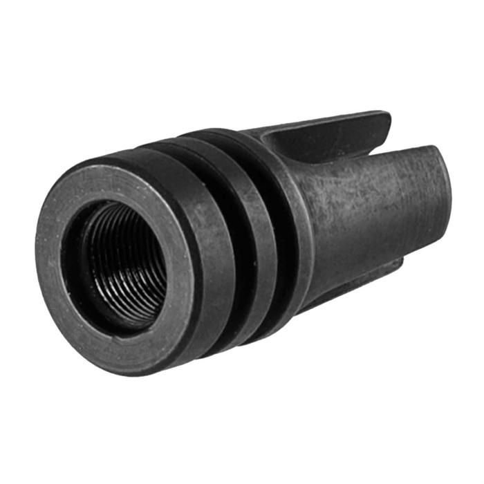 Complete your Retro build with the Brownells Improved 3 Prong Flash Hider. The “Improved” Flash Hider was used following the discontinuation of the early “Duckbill” 3 Prong Flash Hider, as the thin prongs tended to bend & break. This version is proper for Model 602 & 603 rifles, as well as the XM16E1 issued to the US Military and used during Vietnam. Looks great at home on a Retro rifle, or any AR-15 of your choice. “Improved” 3 Prong design has reinforced prongs Phosphate finish ½-28 threads Modeled directly off of original part DOES NOT COME WITH CRUSH WASHER Build the proper XM16E1 or Retro rifle of your choice with an Early 3 Prong Flash Hider. This muzzle device does not have wrench flats to install. A strap wrench or 3 prong armorers wrench is needed to properly install.