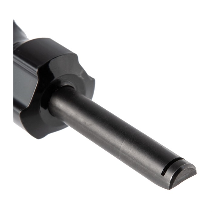 Der Versuch, die Lippen mit einer Zange zu begradigen, kann rauhe, unschöne Kerben oder schlimmer noch, Risse im Metall verursachen, die nicht repariert werden können. Der maschinell gefertigte, stählerne Schaft mit abgeschrägtem Schnitt und Schlitz ermöglicht es dir, die Lippen zu greifen und sie zu stützen, während du den Kontaktwinkel mit der Patronenhülse anpasst.