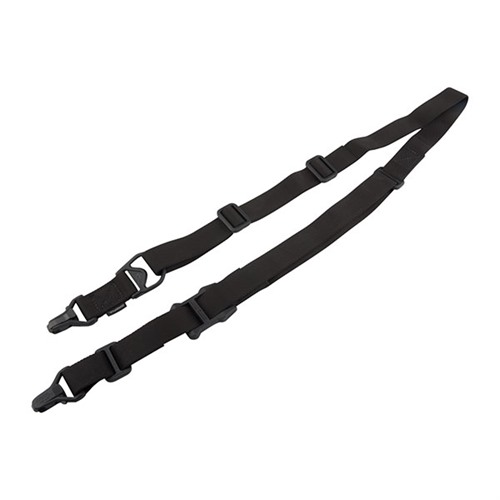 The MS3 Multi-Mission Sling System was designed to give a versatile weapon-retention solution for a multitude of tactical environments and missions. As a standalone product, the rapidly-convertible MS3 allows an operator to leverage the maneuverability of one-point attachment for direct action, or two-point attachment for stability. Single-hand adjustments and quick-release, positive-locking hardware provide flexibility and durability in a truly adaptable sling system. Used in conjunction with the optional Magpul ASAP® plate, the MS3 sling enables seamless transitions into an array of shooting positions without getting bound or fouled. The MS3 concept allows switching from Weapon Shoulder to Reaction Shoulder for shooting around corners, under vehicles, or to minimize exposure. The MS3 can also increase operator survivability by keeping the weapon in the fight in case of injury to the operator's shoulder, arm, or hand. The MS3 GEN2 incorporates a new low profile quick-adjust slider which minimizes bulk and allows for secure, yet effortless, sling adjustment. Webbing length has also been increased for a comfortable fit with all body types and armor configurations. Made in USA and 100% Berry Amendment compliant. NSN: MAG514-BLK 1005-01-640-9861 NSN: MAG514-COY 1005-01-630-9170 RUGGED POLYMER AND INDESTRUCTIBLE HARDWARE Light weight yet durable hardware made with hardened steel and heavy-duty polymer Cross-Bolt Lock Bar in each Paraclip allows the user to optionally lock its lever closed for extra security Steel Paraclip levers are case hardened and finished with a QPQ salt bath nitride process for extreme resistance to wear and corrosion SNAG-FREE, HIGH DURABILITY WEBBING Custom 1.25 inch wide nylon webbing material is strong and wear resistant while remaining anti-chaff for user comfort No tails, loops, or other potential snag hazards Colored webbing has Near Infrared (NIR) treatment to reduce IR signature ADJUSTS TO YOUR NEEDS Custom snag-free high-durability 1-1/4" webbing Fast transition between a one-point sling and two-point sling Symmetrical Paraclip™ shackles allows for easy transition and provides weapon quick-release capabilities in an emergency Low-profile adjustment Slider for adding or removing sling tension in two-point mode with a single-hand SPECS Length, Overall Nominal: 48-60 in. ± 5 in. adjustment Slider Adjustment Range: 10 in. Width, Webbing: 1.25" SLING MOUNTING REAR - Works with the Magpul ASAP® for optimal shoulder transitioning in one-point mode as well as SGA® Receiver Sling Mounts. Also compatible with many snap-hook style sling loops* and standard or QD sling swivels. FRONT - Compatible with the Magpul RSA®, M-LOK® Paraclip™ Sling Mount, MSA®, and shotgun Forward Sling Mounts, as well as many snap-hook style sling loops* and standard or QD sling swivels for use in two-point mode. * Snap-hook style sling loops with an inner diameter of at least 3/8" are required, but 9/16" and larger will provide full range of motion.