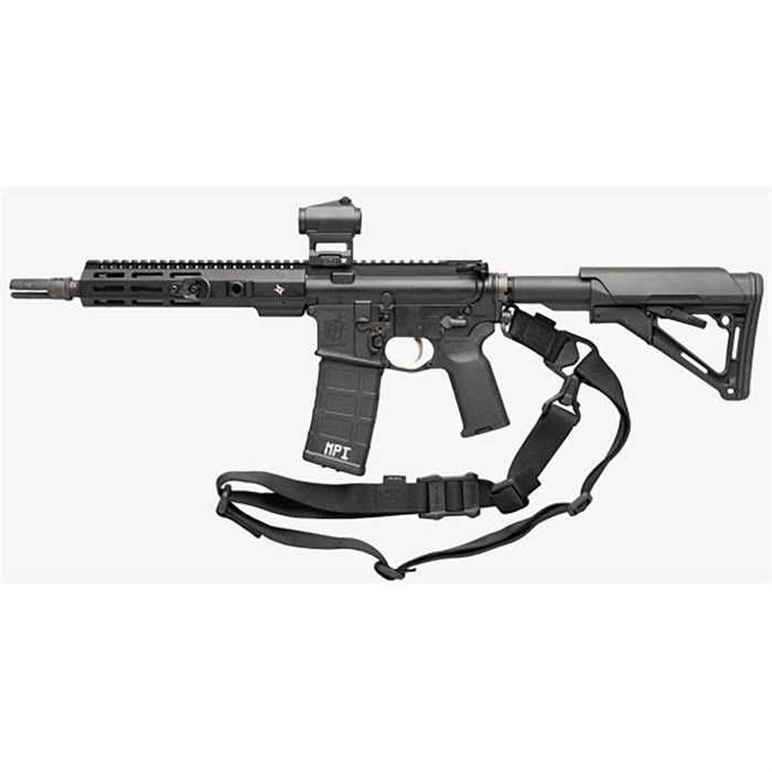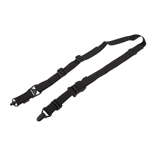 Filling the same mission requirement as the standard MS3 Sling, the MS3 Single QD can quickly switch between one-point and two-point configuration. The MS3 Single QD maintains material construction and specifications identical to that of the standard MS3, but features a heavy-duty push-button QD Sling Swivel for the one-point (rear) weapon attachment rather than the Magpul Paraclip™. This modification allows compatibility with QD sling cups commonly found on lower receivers, receiver end plates, and buttstocks. The MS3 Single QD GEN2 incorporates a new low profile quick-adjust Slider which minimizes bulk and allows for secure, yet effortless, sling adjustment. Webbing length has also been increased for a comfortable fit with all body types and armor configurations. Made in USA and 100% Berry Amendment compliant. NSN: MAG515-COY 1005-01-657-7616 FEATURES THE MS1® SLIDER Rapidly adjustable for length (shorter or longer) with new MS1 Slider Low-profile adjustment Slider for adding or removing sling tension in two-point mode with a single-hand MULTIPLE CONFIGURATIONS Designed for easy rapid convertability between one-point and two-point mode Heavy-duty push-button Quick Disconnect sling swivel for one-point attachment Paraclip shackle allows for fast transition between one-point and two-point configuration Cross-Bolt Lock Bar in the Paraclip allows the user to optionally lock its lever closed for extra security MAGPUL POLYMER AND INDESTRUCTIBLE HARDWARE Lightweight heavy-duty reinforced polymer hardware Steel Paraclip lever is case hardened and finished with a QPQ salt bath nitride process for extreme resistance to wear and corrosion SNAG-FREE, HIGH DURABILITY WEBBING Custom 1.25 inch wide nylon webbing material is strong and wear resistant while remaining anti-chaff for user comfort No tails, loops, or other potential snag hazards Colored webbing has Near Infrared (NIR) treatment to reduce IR signature SPECS Length, Overall Nominal: 48-60 in. ± 5 in. adjustment Slider Adjustment Range: 10 in. Width, Webbing: 1.25" SLING MOUNTING REAR - Works with the Magpul ASAP® for optimal shoulder transitioning in one-point mode as well as with other end plates, receivers, and buttstocks that have a QD sling socket FRONT - Compatible with the Magpul RSA®, M-LOK® Paraclip™ Sling Mount, MSA®, and shotgun Forward Sling Mounts, as well as many snap-hook style sling loops* and standard or QD sling swivels for use in two-point mode * Snap-hook style sling loops with an inner diameter of at least 3/8" are required, but 9/16" and larger will provide full range of motion of the Paraclip
