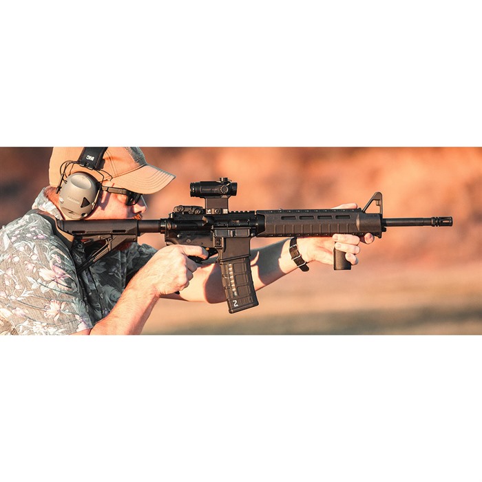 The MOE SL Hand Guard for AR-15/M4 firearms with mid-length gas system and A2 font sight* provides modular flexibility with M-LOK™ accessory slots in a lightweight, sleek, cost effective design. Designed with versatility in mind, M-LOK slots at the two, six, and ten o’clock positions allow the attachment of optional Picatinny rail sections and other accessories for mounting tactical lights, slings, grips, etc. Reinforced, heat-resistant polymer construction provides durability without the weight and expense of an aluminum rail hand guard. A large front extension and lower lip protects the user from the hot front sight gas block assembly and maximizes useable hand guard length. FEATURES Narrow design replaces factory 2-piece, mid-length plastic hand guards Easy to install utilizing existing delta ring and ROUND front hand guard retaining cap with A2 front sight assembly* Slots at the two, six, and ten o'clock positions for mounting direct-attach M-LOK accessories or M-LOK 1913 Picatinny rail sections Reinforced, heat-resistant polymer construction Integral riveted aluminum heat shield Front lip and long side extensions shields hand from hot sight assembly