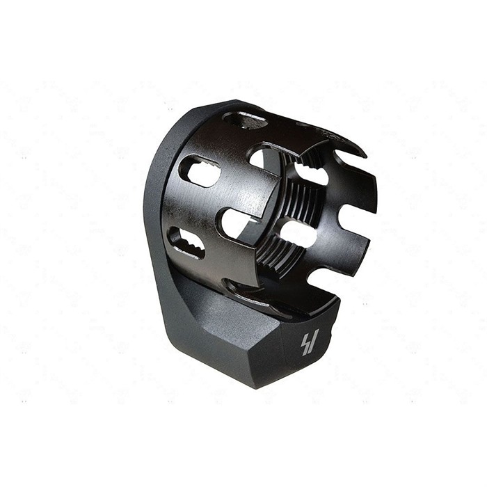 Die Extended End Plate verfügt über eine Quick Detach Sling Swivel Mount, die weiter weg von dem Gewebe des primären Griffs positioniert ist. Dies ermöglicht eine einfachere Handhabung der Waffe in engen Räumen und unter Stress, ohne die schmerzhafte Erfahrung, die durch eine eingeklemmte Hand entstehen kann, wenn man ein Sling an einer standardmäßigen, flachen QD End Plate verwendet.