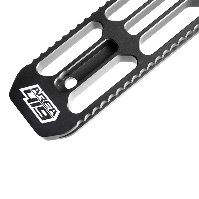 - Serrated rail sides, die mit dem proprietären Klemmdesign von Area 419 interagieren und mechanisch fixiert werden, sodass keine Bewegung möglich ist.