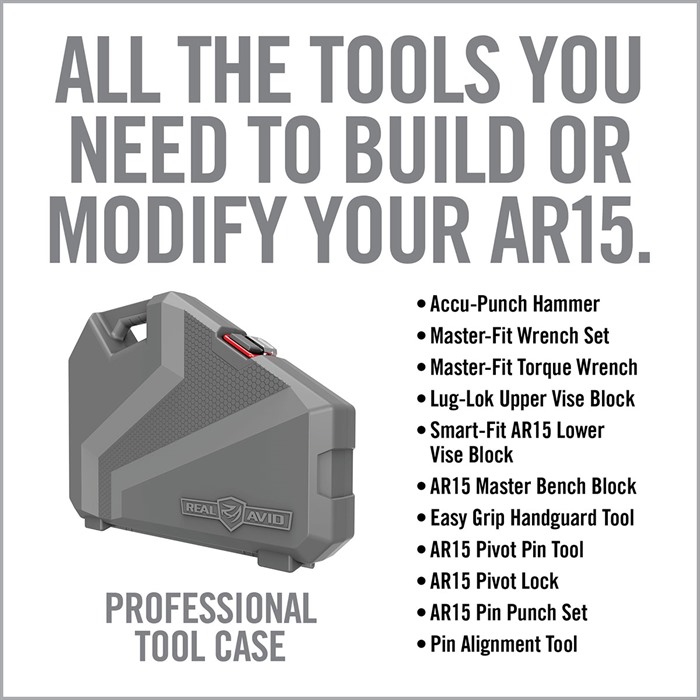 Das ARMORER’S MASTER KIT AR-15 PRO von REAL AVID ist ein fortschrittliches Toolkit, das speziell für AR-15-Liebhaber und professionelle Büchsenmacher entwickelt wurde. Es bietet alle notwendigen Werkzeuge zum Bauen, Anpassen und Warten von AR-15-Gewehren.