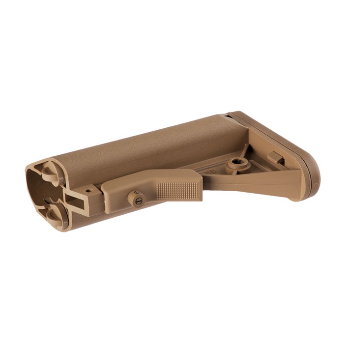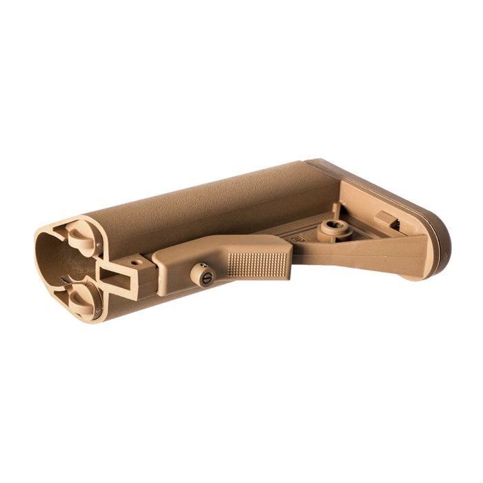 Der derzeit von der U.S. Army eingesetzte, verstärkte Polymer-Schaft passt auf M4-Typ Empfängererweiterungen und bietet ein verbessertes Cheekweld, das für mehr Komfort und Konsistenz sorgt.