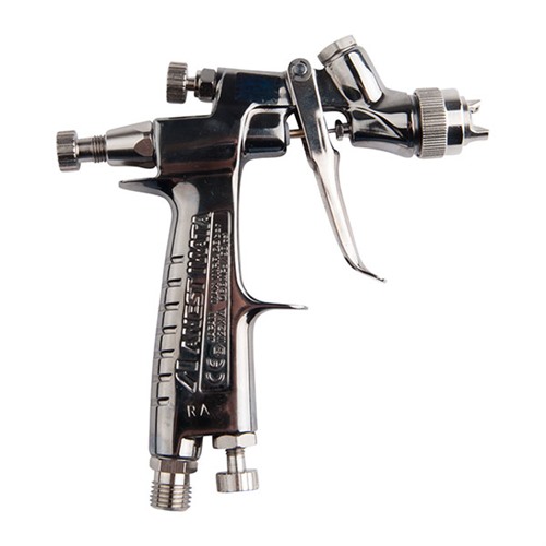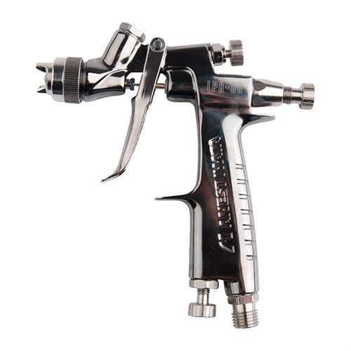 Diese Spritzpistolen sprühen hochviskose Farben - einschließlich Metallicfarben - mühelos. Die Miniatur-Spritzpistole mit zentralem Schwerkraftzufuhr ist eine voll ausgestattete HVLP-Pistole mit Sprühmerkmalen, die der beliebten RG-3-Pistole von Iwata ähnlich sind. Mit nur 1,8 cfm bei 13 psi bietet diese Luftverbrauchsarme Pistole eine hohe Zerstäubung mit präziser Kontrolle des Sprühmusters und minimalem Overspray. Sie verfügt über ein einstellbares Sprühmuster von rund bis vollfächerförmig. Eine Edelstahl-Düse, ein Farbkanal und eine wärmebehandelte Nadel sorgen für langlebiges, leistungsstarkes Sprühen. Sie verwendet das zuverlässige und einfach zu wartende Kartuschen-Stil "Luftventil"-Set, das außerhalb der Pistole gewartet und leicht wieder in den Pistolkörper eingesetzt werden kann. Der 4 150 ml Edelstahl-Schwerkraftbehälter ist zentral montiert und drehbar, sodass du horizontal, vertikal oder unterhalb von Oberflächen sprühen kannst. Im Gegensatz zu Siphon-Zuführpistolen funktioniert dieser Schwerkraftbehälter auch mit kleinen Farbmenge ohne Spritzer. Ideal für Nachbesserungen oder individuelles Lackieren von Autos und Motorrädern, für das Sprühen von Illustrationshintergründen, große Studioarbeiten und Wandmalereien. Das Sprühmuster reicht von 1/8" bis 6" (0,3 cm bis 15,24 cm).Lieferzeit ca. 14-21 Werktage.