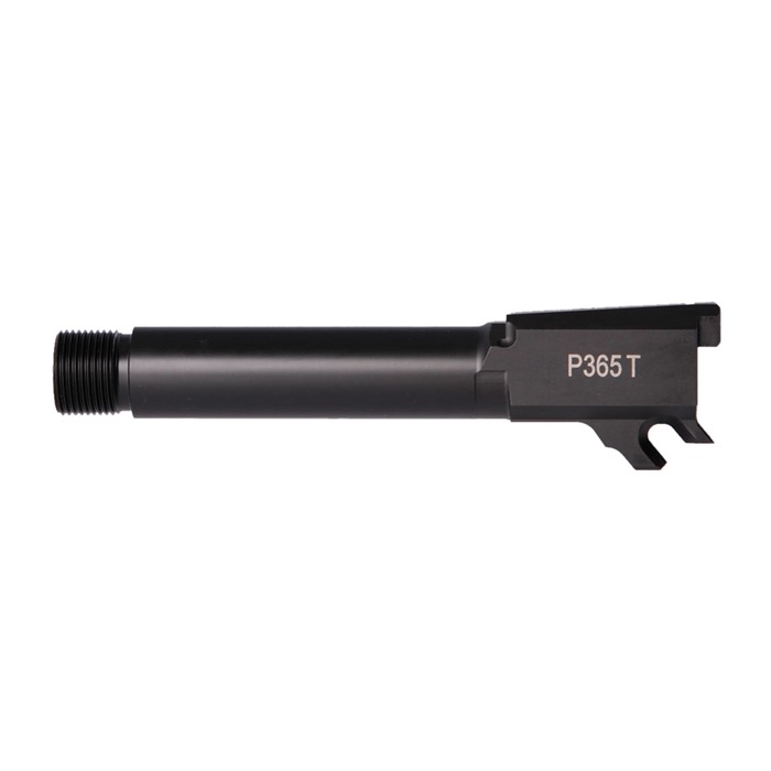 A Premium Barrel To Maximize the Performance of Your Sig P365 The Sig P365 is an outstanding EDC / CCW / personal defense pistol. It's not designed to punch the tightest groups on paper targets - but it has a lot more accuracy potential than folks may think. Drop in our Match-Grade Barrel for the Sig P365 and find out just how much more accuracy your P365 is ready to give you! What makes our Sig P365 barrel match-grade is the way it's machined from hardened 416R stainless steel to precise dimensions for a tight lockup and long service life. Installation should be a straight drop-in deal on most guns. The extra-hard Black Nitride finish resists surface wear and stops in its tracks whatever corrosion might try to challenge the stainless steel. Ahead of the 9mm Luger (9x19mm) chamber is a button-rifled bore with standard, 1-10" right-hand, 6-groove rifling. Fits Sig P365 Only 416R Stainless Steel Black Nitride Finish Button-Rifled, 1-10" Twist Threaded Model has 1/2"-28 tpi Our Match-Grade Barrel for the Sig P365 is available with your choice of a Plain muzzle or Threaded (1/2"-28 tpi) to enable installation of a compensator or sound suppressor. Both are laser engraved with the chambering and the Sig model they fit.