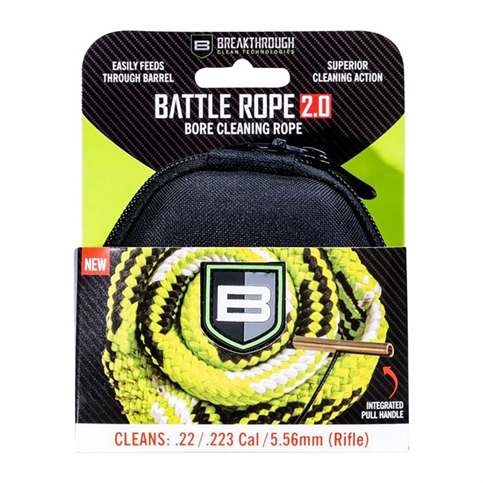 Das Breakthrough Clean Battle Rope 2.0 ist in einer Vielzahl von Kaliberoptionen für Schrotflinten, Gewehre und Handfeuerwaffen erhältlich. Du kannst ganz einfach erkennen, welches Seil zu welchem Kaliber gehört, dank des dauerhaft angebrachten Kalibertags.