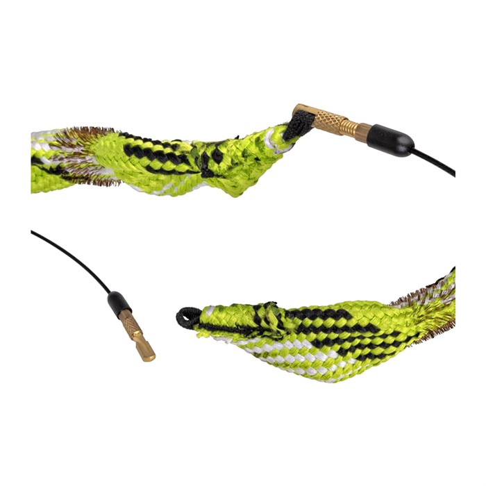 Am Ende des Seils befindet sich ein Gewinde, mit dem du die Nylonborstenbürste leicht abnehmen kannst, um sie zu reinigen oder auszutauschen. Das Seil hat sogar einen patentierten Kabelabschnitt, der für die Einführung in den Auswurfport deiner Waffe konzipiert ist, sodass du deine Feuerwaffe nicht einmal zerlegen musst!