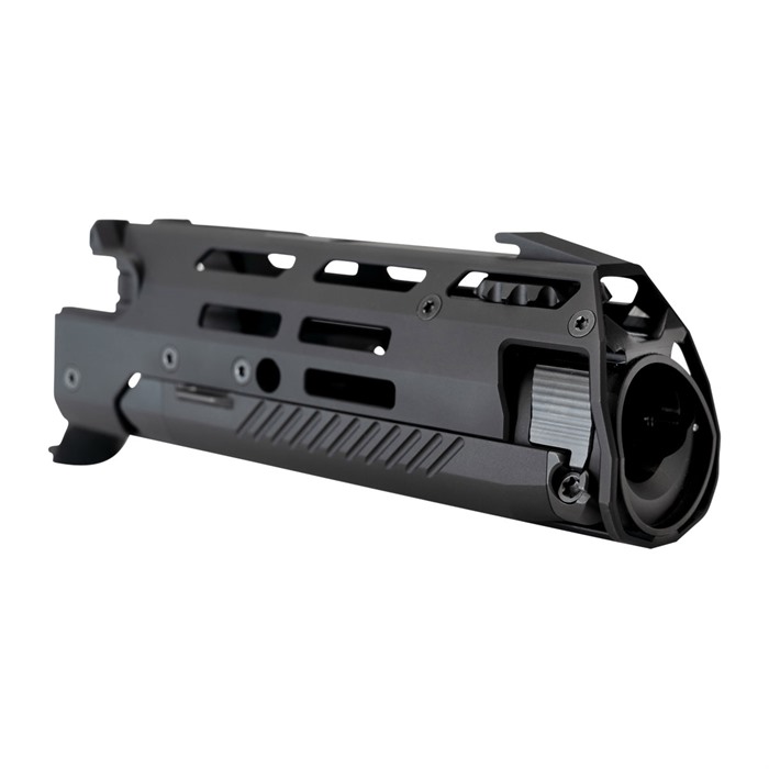 THE MOST RADICAL NEW-CONCEPT BIPOD EVER Balanced. Integrated. Accurate. The BLK LBL Bipod’s innovative barrel-through design allows the rifle to sit ‘in’ the bipod, rather than ‘on’ it, with the center of rotation of the bipod effectively centered on the bore, making it inherently more stable. The result is a balanced rifle without the top-heavy tendencies that can come from large optics. The ball and socket joint provide fluid movement for improved target acquisition and accuracy. With 40 degrees of pan and 15 degrees of cant in each direction, adjusting leg length to level your scope is a thing of the past. BLK LBL was borne out of the question: Why is something as practical as a bipod still an impractical attachment? When not deployed, the legs of the BLK LBL Bipod easily fold to the rear, flush with the hand guard. This means they won’t catch on clothing, gear or branches when you’re on the move, and won’t interfere when shooting off hand, from a barricade, or even when storing your rifle. A Passion for Precision With improved accuracy, lightweight construction, added stability and an expanded range of motion, the BLK LBL Bipod is the new pinnacle of bipod technology. Whether you’re in law enforcement, the armed forces, a sport shooter or hunting in the great outdoors, this bipod gives you exactly what you’re looking for; improved performance. Competitive & Sport Shooters: The BLK LBL Bipod provides improved accuracy and proven stability in all sport shooting competition situations, while the stowed bipod legs won’t interfere when on the move or shooting offhand. Outdoorsmen & Hunters: The integrated design of the folding BLK LBL Bipod means no more catching your bipod legs on heavy brush or branches, your clothes or even your rifle case when stowing. Plus the added stability and accuracy means more precise shots, which means more accurate, more ethical kills. Law Enforcement & Armed Forces: Safety, stability and control. It applies to law enforcement, as well as the BLK LBL Bipod. Of course, improved accuracy means fewer rounds expended, which results in a quicker, safer resolution of situations where protecting citizens and ensuring public safety is of primary importance. Whether it’s the stability only a bipod can provide from a set firing position, or easy handling in close quarters, the integrated design of the BLK LBL Bipod gives soldiers and their fireteam added confidence and effectiveness in nearly any situation. Durable aluminum handguard with the finest integrated bipod available. Made for the IWI X95 We make two lengths, SHORT for 16.5"" barrels, and LONG for 18.5"" barrels. Both the handguard and the legs are longer on the LONG version. SHORT - 209mm/8.2"" long, 478g / 16.8 ounces, Legs extend from 6"" to 9"" LONG - 248mm/9.7"" long, 526g/ 18.5 ounces, Legs extend from 8"" to 11.5"" 40 degrees of Cant rotation