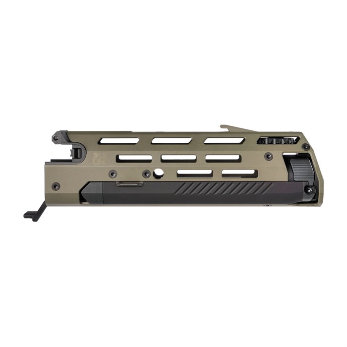 THE MOST RADICAL NEW-CONCEPT BIPOD EVER Balanced. Integrated. Accurate. The BLK LBL Bipod’s innovative barrel-through design allows the rifle to sit ‘in’ the bipod, rather than ‘on’ it, with the center of rotation of the bipod effectively centered on the bore, making it inherently more stable. The result is a balanced rifle without the top-heavy tendencies that can come from large optics. The ball and socket joint provide fluid movement for improved target acquisition and accuracy. With 40 degrees of pan and 15 degrees of cant in each direction, adjusting leg length to level your scope is a thing of the past. BLK LBL was borne out of the question: Why is something as practical as a bipod still an impractical attachment? When not deployed, the legs of the BLK LBL Bipod easily fold to the rear, flush with the hand guard. This means they won’t catch on clothing, gear or branches when you’re on the move, and won’t interfere when shooting off hand, from a barricade, or even when storing your rifle. A Passion for Precision With improved accuracy, lightweight construction, added stability and an expanded range of motion, the BLK LBL Bipod is the new pinnacle of bipod technology. Whether you’re in law enforcement, the armed forces, a sport shooter or hunting in the great outdoors, this bipod gives you exactly what you’re looking for; improved performance. Competitive & Sport Shooters: The BLK LBL Bipod provides improved accuracy and proven stability in all sport shooting competition situations, while the stowed bipod legs won’t interfere when on the move or shooting offhand. Outdoorsmen & Hunters: The integrated design of the folding BLK LBL Bipod means no more catching your bipod legs on heavy brush or branches, your clothes or even your rifle case when stowing. Plus the added stability and accuracy means more precise shots, which means more accurate, more ethical kills. Law Enforcement & Armed Forces: Safety, stability and control. It applies to law enforcement, as well as the BLK LBL Bipod. Of course, improved accuracy means fewer rounds expended, which results in a quicker, safer resolution of situations where protecting citizens and ensuring public safety is of primary importance. Whether it’s the stability only a bipod can provide from a set firing position, or easy handling in close quarters, the integrated design of the BLK LBL Bipod gives soldiers and their fireteam added confidence and effectiveness in nearly any situation. Durable aluminum handguard with the finest integrated bipod available. Made for the IWI X95 We make two lengths, SHORT for 16.5"" barrels, and LONG for 18.5"" barrels. Both the handguard and the legs are longer on the LONG version. SHORT - 209mm/8.2"" long, 478g / 16.8 ounces, Legs extend from 6"" to 9"" LONG - 248mm/9.7"" long, 526g/ 18.5 ounces, Legs extend from 8"" to 11.5"" 40 degrees of Cant rotation