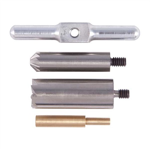 050806022645 Das Set enthält: einen 90° Fräser zum Quadratmachen einer Mündung nach dem Kürzen oder zur Reparatur von Schäden; einen 45° Entgratungsschneider, um die Kanten der Züge für einen sauberen Geschossausgang zu brechen oder den Mund eines Revolverzylinders für schnelles Nachladen zu entgraten; sowie einen Griff, der zu jedem Fräser passt, und einen Messingbohrpilot. Der austauschbare Pilot hält den Fräser richtig ausgerichtet. Kaufe zusätzliche Piloten, um einen Fräser für viele verschiedene Kaliber zu verwenden. Piloten für andere Kaliber sind separat erhältlich.Nachbestellt, Lieferzeit ca. 4-12 Wochen aus dem Lager USA.