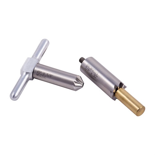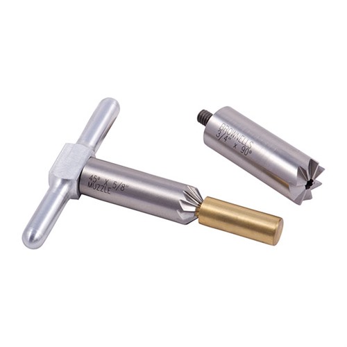 050806012813 Das Set enthält: einen 90° Fräser zum Quadratmachen einer Mündung nach dem Kürzen oder zur Reparatur von Schäden; einen 45° Entgratungsschneider, um die Kanten der Züge für einen sauberen Geschossausgang zu brechen oder den Mund eines Revolverzylinders für schnelles Nachladen zu entgraten; sowie einen Griff, der zu jedem Fräser passt, und einen Messingbohrpilot. Der austauschbare Pilot hält den Fräser richtig ausgerichtet. Kaufe zusätzliche Piloten, um einen Fräser für viele verschiedene Kaliber zu verwenden. Piloten für andere Kaliber sind separat erhältlich.Nachbestellt, Lieferzeit ca. 4-12 Wochen aus dem Lager USA.