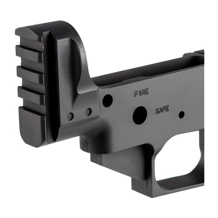 Am hinteren Ende des BRN-180® Lower Receivers findest du einen 1913 Picatinny-Schienenabschnitt anstelle der überflüssigen traditionellen AR-15 Buffer Tube-Gewinde. Dies ermöglicht dir, sofort eine Schulterstütze oder einen Pistolengriff zu montieren, wie z.B. für die Sig MCX oder MPX, die dir die Möglichkeit geben, das 'Feuern im gefalteten Zustand'-Design der BRN-180® Upper Receivers zu nutzen.