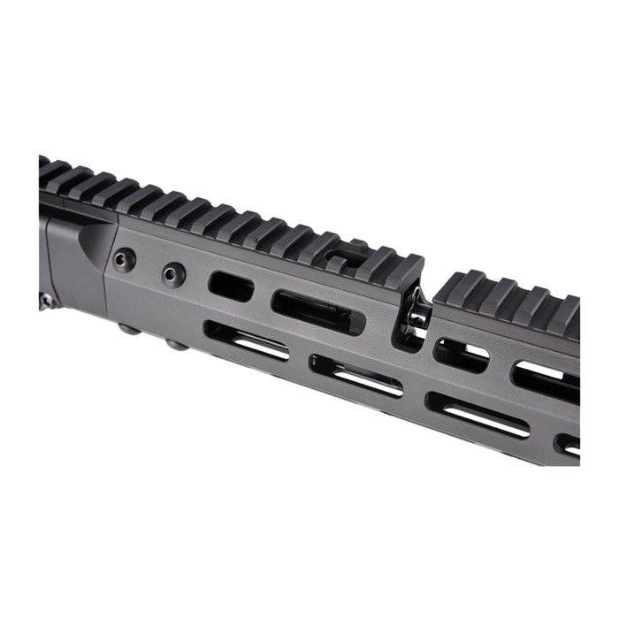 Zusätzlich zum neuen verstellbaren Gas-System wird der Handguard jetzt mit einer einzigen Verriegelungsschraube gehalten. Diese große Schraube bietet ausreichend Verriegelungskraft und sorgt für eine konsistentere Handguard-Befestigung als der vorherige Mechanismus. Bei längeren Schussfolgen und der Erwärmung des Laufs stellt dieses neue Verriegelungssystem sicher, dass der Handguard die Ausrichtung und Steifigkeit mit dem Oberteil behält. Mit diesem neuen Zerlegemechanismus kann der Handguard entfernt werden, um auf das Gas-System zuzugreifen, ohne die internen Komponenten zu entfernen.