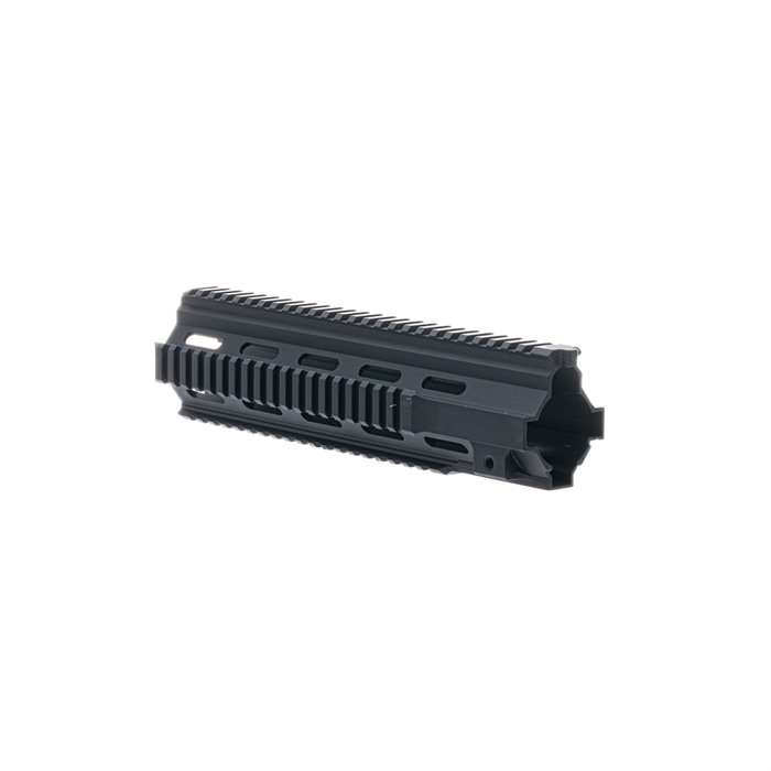 “M27” inspired Quad Rail Handguard for the BRN-4™ and HK® 416 platforms Available in 11 and 9 inch lengths, the BRN-4 M27 handguards are suitable for a variety of barrel lengths and applications. The 11 inch model is right at home with the BRN-4 M27 16 inch barrel, as it covers up the gas block and provides plenty of picatinny rail real estate on a rifle platform. The 9 inch model is right at home on carbine builds, especially a handy 10.4” model. Unique to Brownells BRN-4, these quad rail handguards are available in Flat Dark Earth. The handguard by itself on a matte black upper receiver has a distinct and unique look, and breaks up the overall profile of the firearm. Also unique on the Brownells BRN-4 quad rail handguard compared to similar handguards, is the machined in locking bolt hardware. This ensures the clamping forces are evenly spread to the body of the handguard, optimizing clamping force. You don’t have to worry about zero shifting with this setup. Indexing tab at the top interfaces with the BRN-4 upper receiver and prevents rotation.Handguard attaches directly to any Brownells BRN-4 upper receiver group, and is also compatible with HK®, 416, MR556 and MR223 platforms.