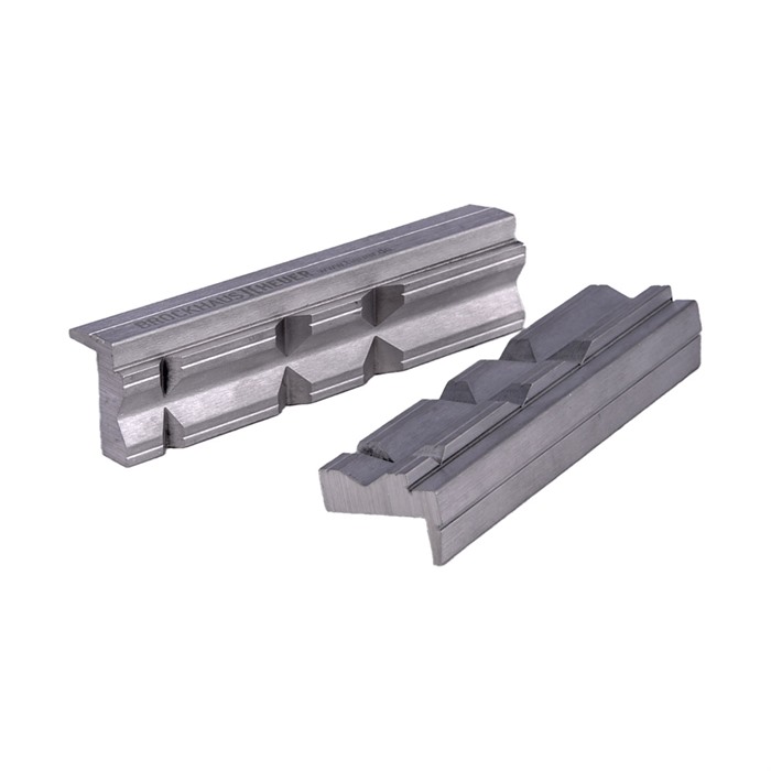 050806000964 Spezialisierte Backen helfen dir, das Beste aus deinem Brownells Werkbankvisier herauszuholen. Die Einsätze rutschen über die Werkstattbacken deines Brownells Gunsmith's Bench Vise und ermöglichen es dir, dein Visier für spezifische Projekte und Arten von Werkstücken anzupassen. Sie sind mit verschiedenen Materialien versehen, die helfen, Teile sicher zu greifen, während das Risiko von Beschädigungen oder Kratzern minimiert wird. Die Einsätze bestehen aus leichtem, aber starkem Aluminium und werden durch leistungsstarke Neodym-Magnete an Ort und Stelle gehalten. Das Aluminiummaterial verhindert, dass die Magnete Stahlteile, die in den Backen gehalten werden, magnetisieren. Prism Soft Jaws - Polyurethan-Prismenbacken sind dafür ausgelegt, empfindliche runde und ovale Werkstücke sicher zu klemmen, ohne sie zu beschädigen. "Prism"-förmige Ausschnitte in verschiedenen Größen im Polyurethan helfen, die Werkstücke sicher zu positionieren. Die weiche Polyurethan-Oberfläche ist extrem flexibel und widerstandsfähig gegen Verformungen oder eine dauerhafte "Setzung". Sobald der Druck entfernt wird, kehren sie in ihre ursprüngliche Form zurück. Dieses Material wird auch mit der Zeit nicht hart. Checkered Soft Jaws - Diese Polyurethan-Backeneinsätze haben ein einzigartiges "Rautenmuster" auf den Greifflächen, um empfindliche kleine Teile ohne Beschädigung zu halten. Die weiche Polyurethan-Oberfläche ist extrem flexibel und widerstandsfähig gegen Verformungen oder eine dauerhafte "Setzung". Dieses Material wird auch mit der Zeit nicht hart. Prism Aluminum Jaws - Diese Einsätze haben einen Härtefaktor zwischen dem von Kupfer und Blei und sind dafür ausgelegt, runde/ovale Gegenstände im Brownells Werkbankvisier sicher zu klemmen. Ein horizontaler prismatischer Ausschnitt und drei verschiedene vertikale Prismen sind dafür konzipiert, runde oder ovale Werkstücke sicher zu klemmen. Der 90°-Ausschnitt im oberen Teil dieser Backen ist für das horizontale Klemmen von flachem Material ausgelegt. Grooved Aluminum Jaws - Helfen dir, zylindrische Werkstücke sicher in deinem Brownells Visier zu klemmen. Sechs horizontale Rillen halten Werkstücke sicher an Ort und Stelle, während eine tiefere Mittelrille Bolzen, Stangen, Stifte und andere zylindrische Teile sicher verankert, während du daran arbeitest. Mit einem Härtefaktor zwischen dem von Kupfer und Blei sind diese Backen von Natur aus viel weicher als jedes Stahlteil, das sie greifen, sodass du das Werkstück nicht beschädigen wirst. Fiber Jaws - Das dichte faserige Material auf den Flächen dieser Backen hält fein bearbeitete oder polierte Teile sicher. Die Fasern beschädigen die polierte Oberfläche nicht. Die dichten Schichten aus Faser sind hitzebeständig und verformen sich nicht, wenn warme Werkstücke geklemmt werden. Rubber Jaws - Speziell zum Halten sehr empfindlicher Holz- und Kunststoffteile sowie dünnwandiger Rohre konzipiert, haben diese Backen eine weiche, synthetische Gummibeschichtung, um zerbrechliche Werkstücke sanft zu halten, die nur sehr leichten Klemmdruck aushalten können. Das Gummimaterial wird von drei Lagen Canvas unterstützt, die den federnden Tendenzen des Gummis entgegenwirken und genügend Steifigkeit bieten, um das Teil sicher zu halten. Felt Jaws - Diese Backeneinsätze haben eine Filzoberfläche, die dafür ausgelegt ist, extrem empfindliche Werkstücke zu klemmen. Das spezielle abriebfeste Filzmaterial passt sich eng an die Konturen des Werkstücks an, sodass minimaler Klemmdruck erforderlich ist, um das Stück an Ort und Stelle zu halten. Selbst die empfindlichsten Werkstücke können verankert werden, ohne sie zu beschädigen. Replacement Factory Steel Jaws - Dies sind die gleichen Stahlbacken, die bei deinem neuen Brownells Gunsmith's Bench Vise installiert waren. Im Laufe der Zeit können die ursprünglichen Backen abgenutzt oder beschädigt werden. Sie können ganz einfach ersetzt werden, indem du die zwei Schrauben, die jede Backe sichern, entfernst und sie durch diese ersetzt. Die Schrauben werden von der Außenseite des Backenkörpers eingesetzt, was die Installation erleichtert und weniger wahrscheinlich Schäden verursacht. Wie die Originale haben diese Backen sowohl eine glatte als auch eine "checkered" strukturierte Oberfläche. Verwende die Seite, die am besten für das jeweilige Projekt geeignet ist.Lieferzeit ca. 14-21 Werktage.