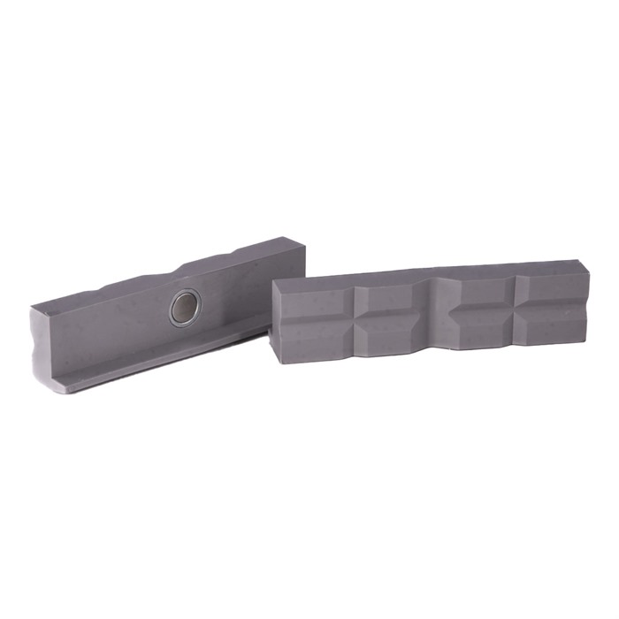 Diese Backen sind speziell für das Halten sehr empfindlicher Holz- und Kunststoffteile sowie dünnwandiger Rohre konzipiert. Sie haben eine weiche, synthetische Gummifläche, um zerbrechliche Werkstücke sanft zu halten, die nur sehr leichten Klemmdruck aushalten können. Das Gummimaterial ist mit drei Lagen Canvas verstärkt, die die federnden Eigenschaften des Gummis ausgleichen und ausreichend Steifigkeit bieten, um das Teil sicher zu halten.