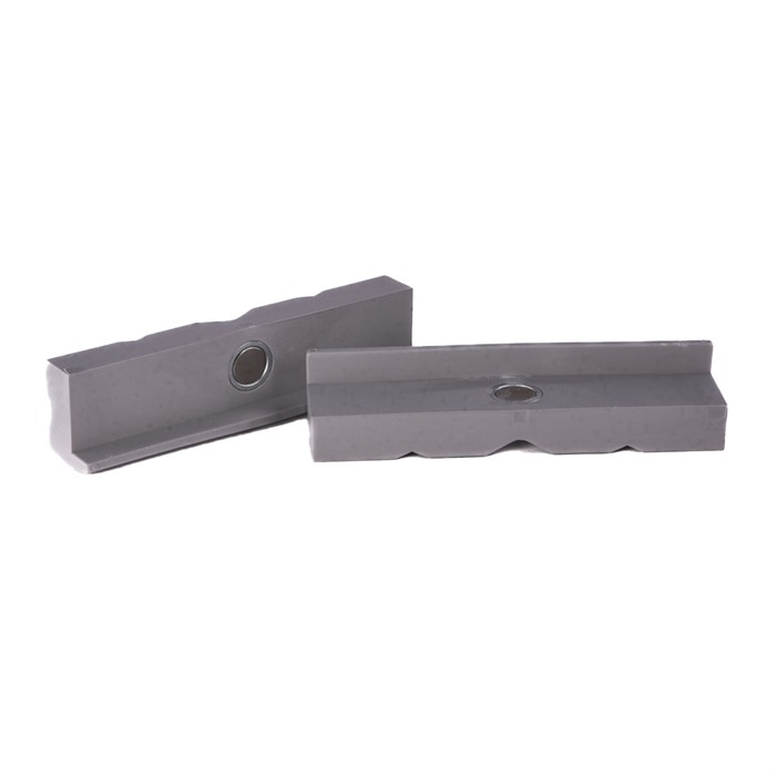 Das dichte faserige Material auf den Flächen dieser Backen hält fein bearbeitete oder polierte Teile sicher fest. Die Fasern werden die polierte Oberfläche nicht beschädigen. Die dichten Schichten aus Faser sind hitzebeständig und verformen sich nicht, wenn warme Werkstücke geklemmt werden.
