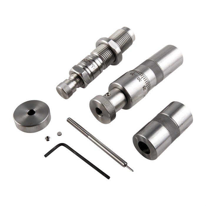 Das BUSHING FULL LENGTH DIE KITS MIT CASE GAUGE für den 6.5 Creedmoor von L.E. WILSON ist ein komplettes, verbessertes Set aus rostfreiem Stahl, das Folgendes beinhaltet: