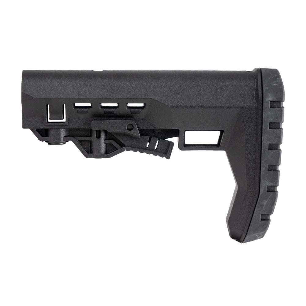 Optimized for use with plate carriers, the Breacher AR-15 Mil-Spec Stock prioritizes your shooting experience, even when wearing body armor. The angled rubber butt-pad and dual-side release latches are specifically designed to facilitate efficient shoulder transitions and provide a secure and stable shooting platform.