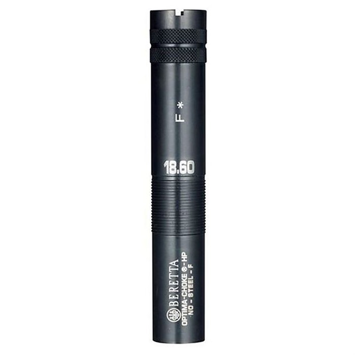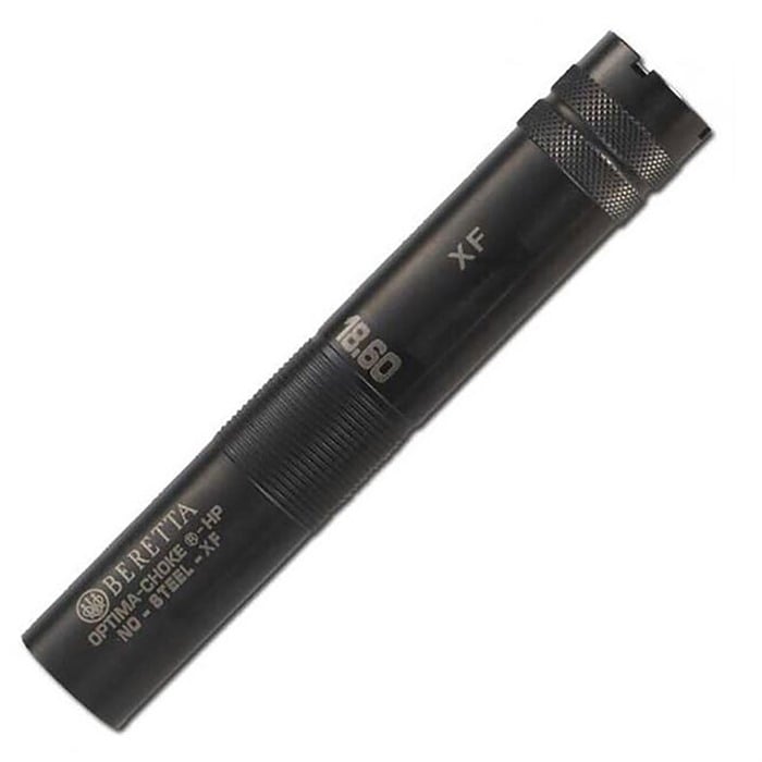 Beretta Optima-Choke® HP tubes stand up to the heat of competition. Manufactured from high strength steel and finished in a nickel-alloy coating, these chokes guarantee significant corrosion resistance and have the ability to withstand the rigors of steel shot. Optima-Choke® HP tubes are fully interchangeable on all Beretta barrels that are threaded for Optima-Choke® HP. Fits: Beretta A400 Xtreme, A400 Xplor, A400 Xcel, 690, 692, DT11, A300 Xtrema, SV10 Beretta suggest that - when using Steel Shot - you only use choke tubes marked with the SP (Steel Proof) identification on the side and that you use the most open choke system possible – i.e. Cylinder / Improved Cylinder / or Modified. Beretta DOES NOT recommend use of Steel Shot in the X-Tra Full Turkey / Full / or Improved Modified choke tube. As with any shotgun, always be sure to check your choke tubes during use to verify that they are tight in the barrel. Loose choke tubes can cause barrel damage. WARNING: Use of the Optima HP choke tube in an Optima firearm (without the HP designation) can cause severe damage to the choke tube and barrel when the shotgun is fired. Only use Optima HP choke tubes in these Optima HP shotguns: SV10 Perennia, SV10 Prevail, A400 Family of shotguns, 690, 692, DT-11 and UGB25 Sporting.