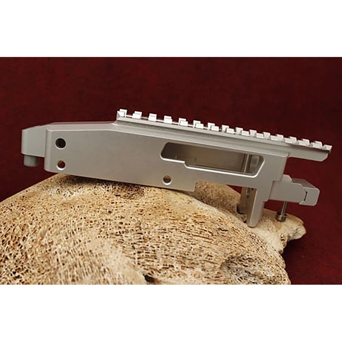 Der Classic Receiver ist mit einem leicht zugänglichen Reinigungslöcher ausgestattet und bietet eine proprietäre, austauschbare Low Scope Base mit verschiedenen Minuten Winkel (MOA) zur Auswahl. Zero MOA ist ideal für 50 Yards und unter, während 20 MOA für 150 Yards und mehr hilfreich ist. Er wurde so konzipiert, dass er ohne Modifikationen in einen für das 10/22 gefrästen Schaft passt.