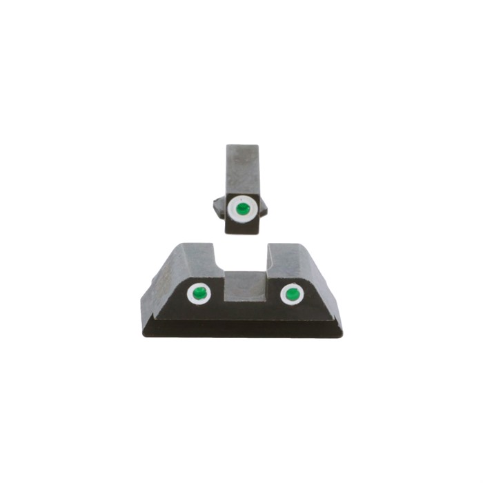 Easily visible under all lighting conditions, the AMERIGLO® Classic Tritium series sight comes with a green tritium lamp/white outline for the front sight and two green tritium lamps/white outlines for the rear sight. Fits: Glock® 42,43,43X,48 SPECS Fits Make: Glock® Fits Model: 42,43,43X, 48 Fits MOS Slide: Yes Front Sight Style; Tritium Front Sight Finish; Case Hardened Front Tritium Color: Green Front Outline Color; White Front Blade Width: 0.125 in. (3.18mm) Front Blade Height: 0.165 in. (4.19mm) Rear Sight Style: 2-Dot Tritium Rear Notch Shape: Square Rear Sight Finish: Case Hardened Rear Tritium Color: Green Rear Outline Color: White Rear Blade Height: 0.168 in. (4.27mm) Overall Rear Height: 0.248 in. (6.3mm)